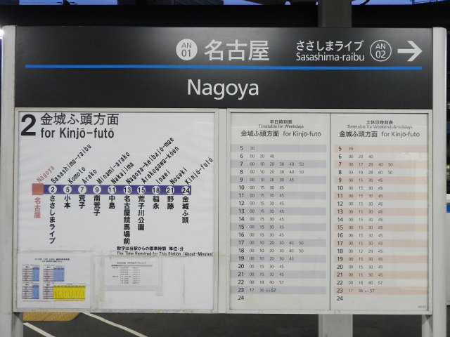 02 - "Sasashima-live" だと「笹島が生きている」みたいで気味が悪いので "Sasashima-raibu" にしているらしい。まあそもそもささしまライブが何か私は知りませんがね。名古屋行き長距離バスはみんなここに着くイメージ。