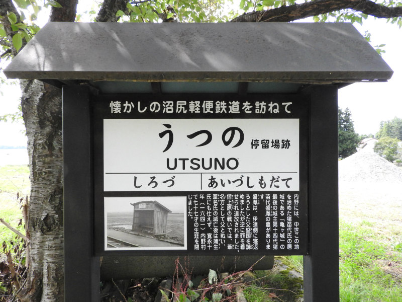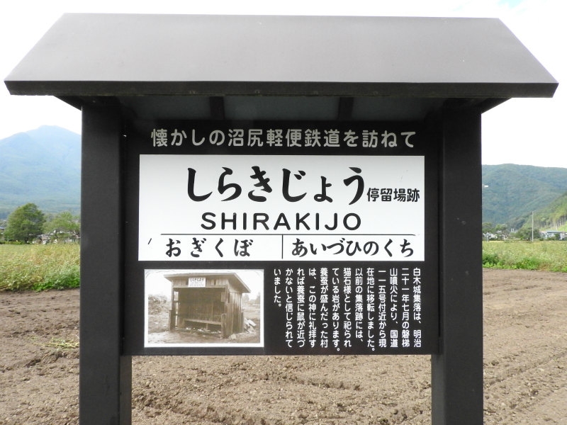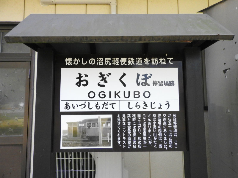 - 記念碑としての駅名標を模した看板が各駅跡に設置されています。白津駅周辺や内野 - 会津下館間、名家 - 酸川野間では用地買収に難航したらしく、公道上を通らざるを得なくなった区間があったそうです。