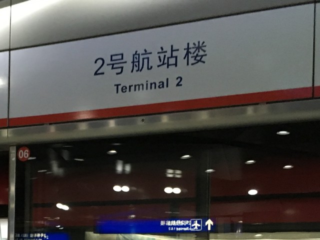 北京首都国際空港第2ターミナル駅。第1ターミナルもここで下車。