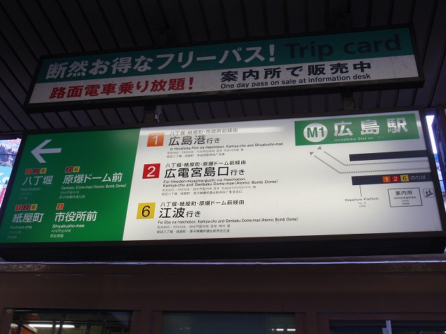 - 原爆ドーム最寄り駅です。久々に来たら外国語表記が直されてました。以前は広島市民球場の最寄り駅でもありましたが、こっちは移転しちゃいました。