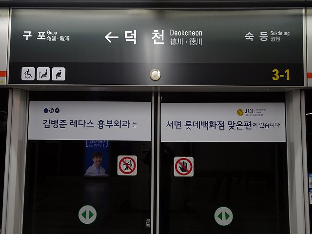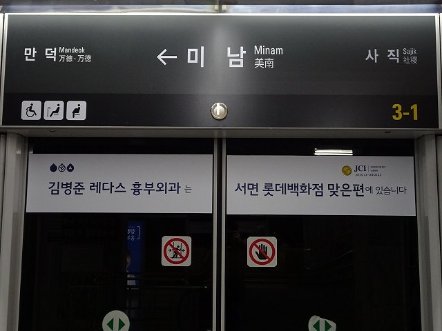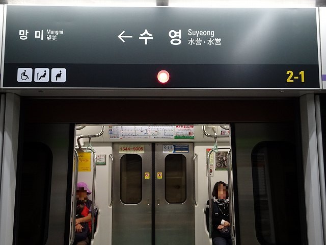 - 釜山都市鉄道3号線 수영 301(漢字表記:水營/スヨン駅) [別]