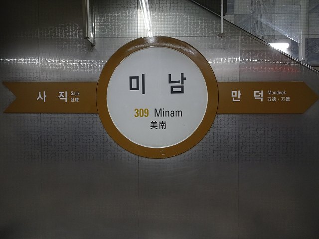 - 釜山都市鉄道3号線 미남 309(漢字表記:美南/ミナム駅) [別]