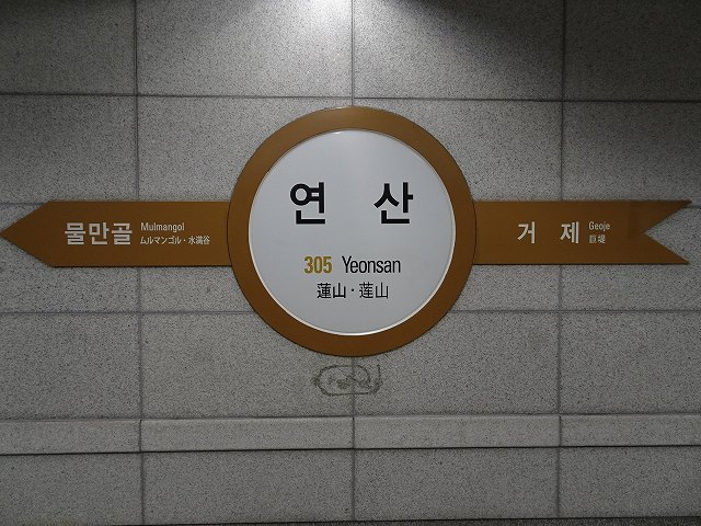 - 1号線は乗り換え。以前は연산동(蓮山洞、ヨンサンドン)という駅名だったらしい。