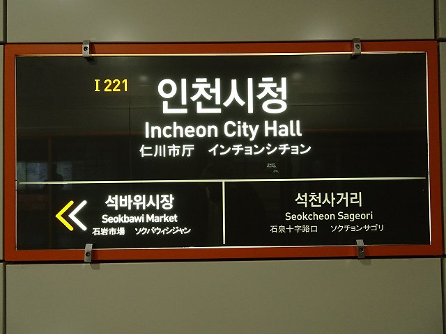 - 仁川都市鉄道2号線 인천시청 I221(漢字表記:仁川市廳/インチョンシチョン駅) [別]