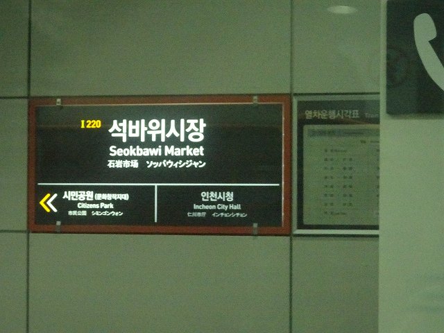- 仁川都市鉄道2号線 석바위시장 I220(漢字表記:石바위市場/ソクパウィシジャン駅)