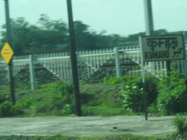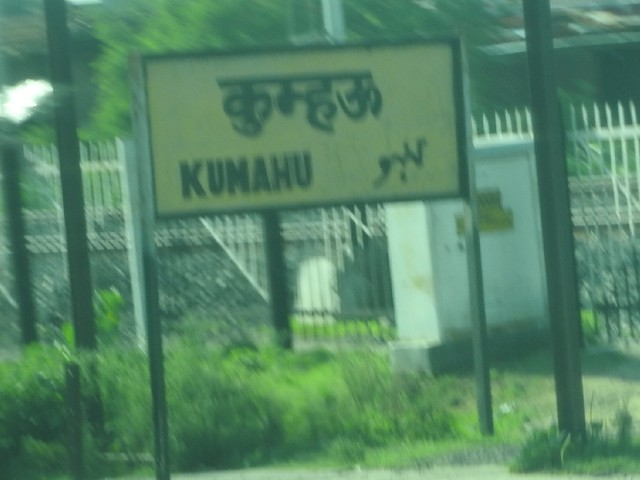 - 疑惑の駅名。Kumahu って書いてあるけど、ヒンディーを見るに Kumha'ū としか読めない…。