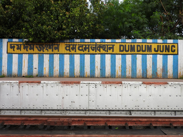 - インド鉄道কলকাতা環状線・শিয়ালদহ - রানাঘাট線・শিয়ালদহ - বনগাঁ線 দমদম(ヒンディー:दमदम/英語:Dum Dum/ドムドム駅) [別1] [別2] [別3] [別4] [別5] [別6] [別7] [別8] [別9] [別10]