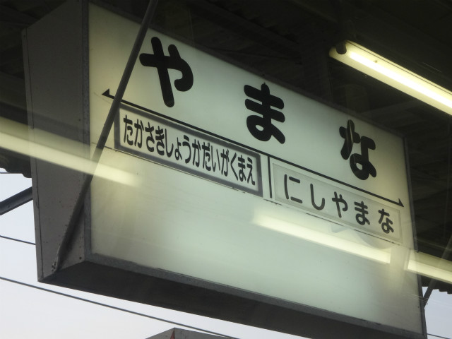 - [別]のほう、隣の駅名が2つとも上から貼り付けられてますね。高崎商科大学前は新駅で、西山名は駅名改称のため、らしい。