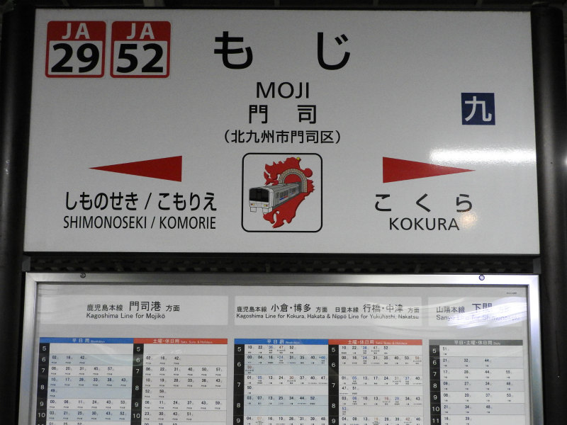 に入る。関門トンネルを抜けた九州最初の駅なので、駅名標にもそのシンボル画が描かれています。