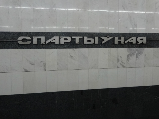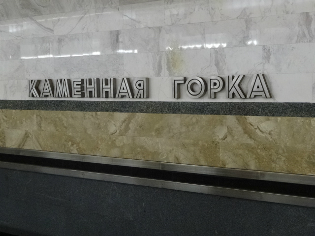 - メーデー駅。たまーにある相対式ホームの駅。よく見たら駅名標ロシア語なんだよなあ…。この浮き出た文字は、近付いて見ると手作り感がすごかった。
