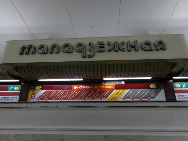 - Маскоўская線に乗り換えできます。ベラルーシ語の駅名標撮り損ねた…。駅名はベラルーシを代表する詩人 Янка Купала(ヤンカ・クパーラ)から。