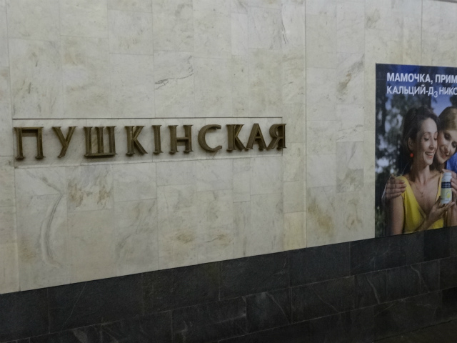 - プーシキン駅。Александр Сергеевич Пушкин(アレクサンドル・セルゲーヴィチ・プーシキン)はロシアを代表する詩人ですね。
