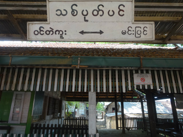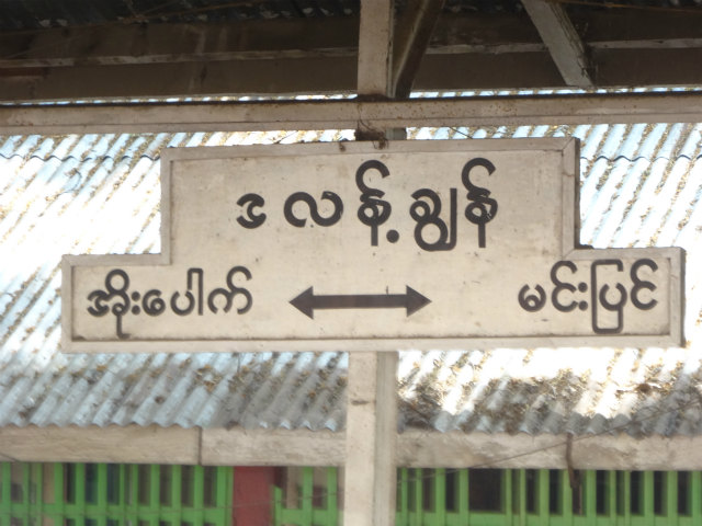 - この駅から管理区域が変わるようで、駅の端にある駅名標からローマ字が消えます。路線名もတောင်တွင်းကြီး - ပုဂံ線に変わります。