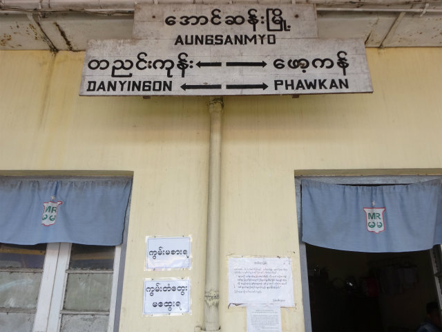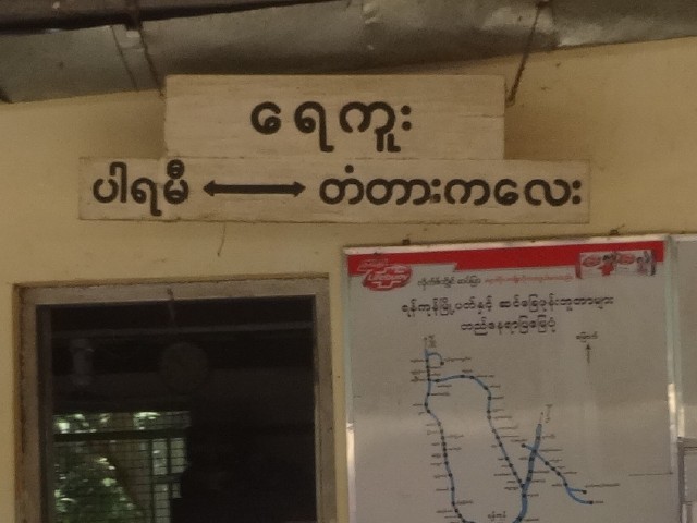 - 宿泊したホテルの最寄駅。乗ろうとしていた普通列車は通過してしまいました。そしてရန်ကုန် - မန္တလေး線が分岐する駅です。
