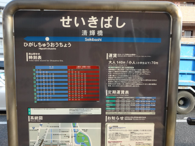 - 終点。岡山大学鹿田キャンパスの最寄駅。清輝橋っていう橋を探したのですが、見付からなかった。この電停がある交差点自体が小川の上にあるので、それが清輝橋ってことなのか?