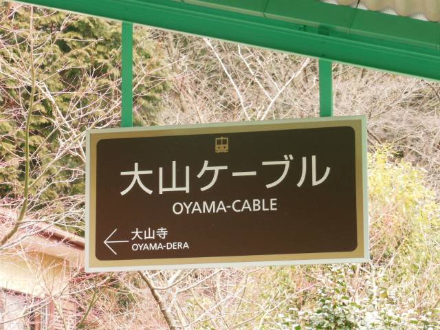 大山って神社の山じゃ的なイメージがあったが、お寺もあります。列車の交換を行う駅で、ケーブルカーの性質上、同じホームでも列車によって方向が変わるので、線路にケーブルがあるかないかで見分けてください。