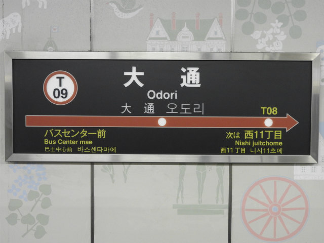10 - 柱の駅名標しか撮れなかった。札幌発の長距離バスなどが発着する大通バスセンターの最寄り駅。