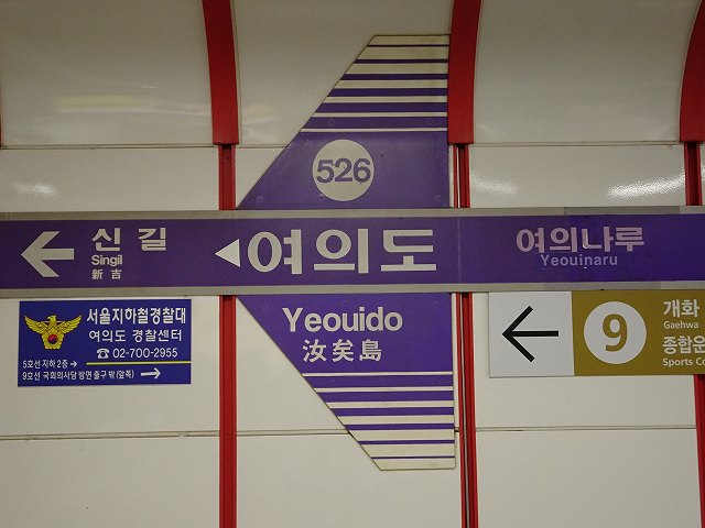 - ソウル地下鉄5号線 여의도 526(漢字表記:汝矣島/ヨイド駅) [別1] [別2]