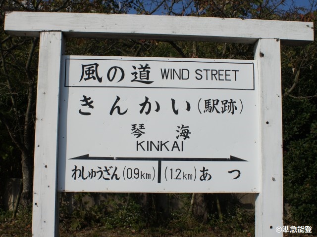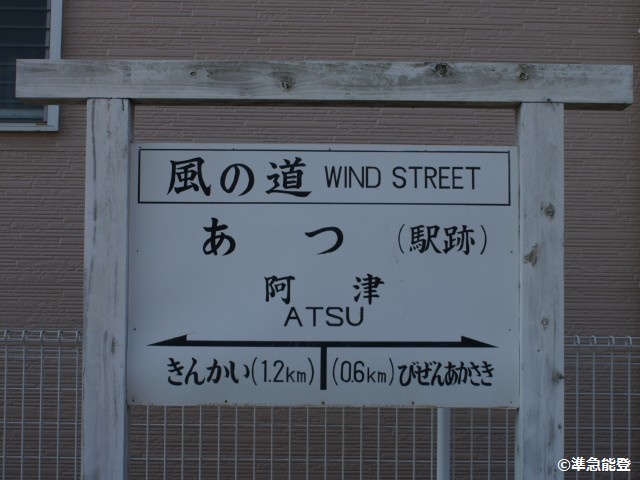 - 起点駅でした。やたらと綺麗ですがこれも復刻版の駅名標なのかな? 廃線跡は「風の道」として自転車道になっています。