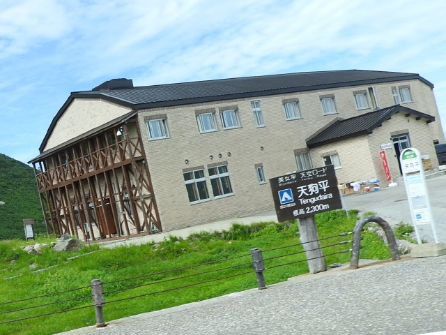 - 途中のバス停は他にもいっぱいあるんですが、ここだけ撮ってた。この建物は天狗平山荘です。