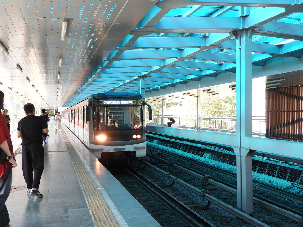- 「駅前広場1」駅。ジョージア鉄道のトビリシ中央駅と隣接しています。საბურთალო線も接続。